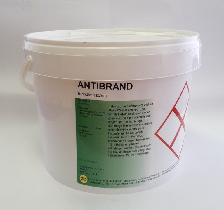 Mit Brandhefeschutz lässt sich Brandhefe, bei der Reinigung der Gärbottiche leicht entfernen. Antibrand sollte mittels einer Malerbürste oder einer Farbrolle auf die Gärbottichinnenwände, in Höhe der zu erwartenden Kräusendecke (etwa 0,5-1,0 m Breite), ringsherum aufgetragen werden. Das Auftragen des Brandhefeschutzes erfolgt etwa 3 Stunden vor Würze – Kühlbegin. Die Brandhefe lässt sich bei der Reinigung nach dem Gärprozess nun leicht entfernen.