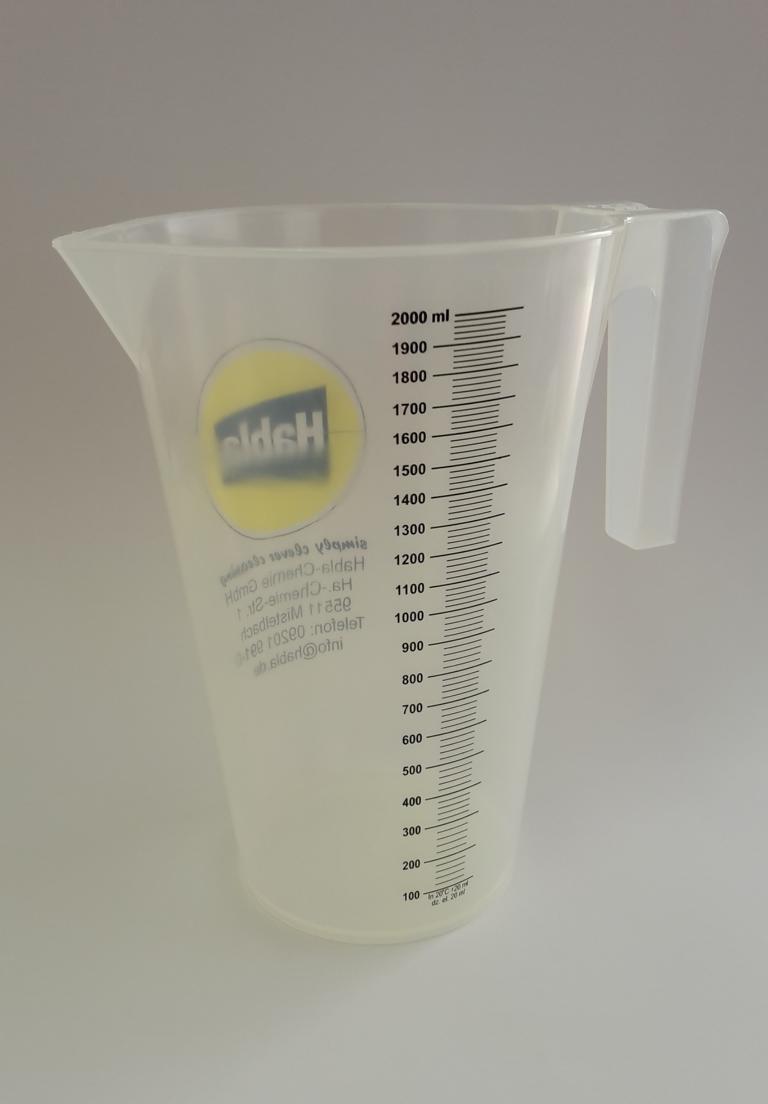 Messbecher 2000ml mit Skala. Für Spülmaschinen geeignet (bis 85°C). Lebensmittel geeignet. Beständig gegen eine Vielzahl von Chemikalien.